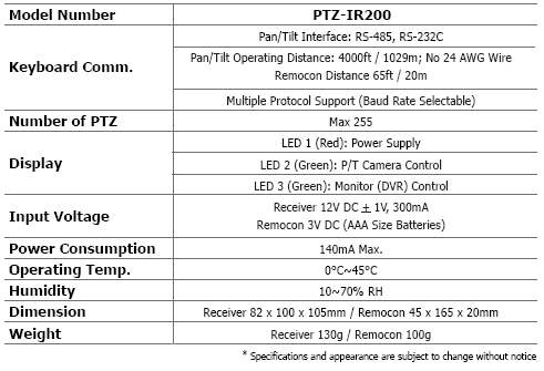 | PTZ-IR200 | |||